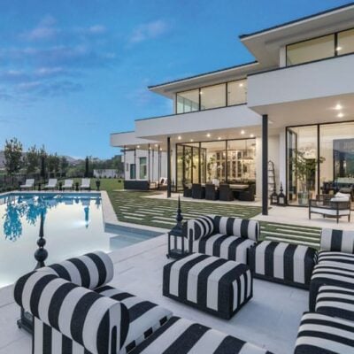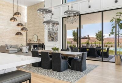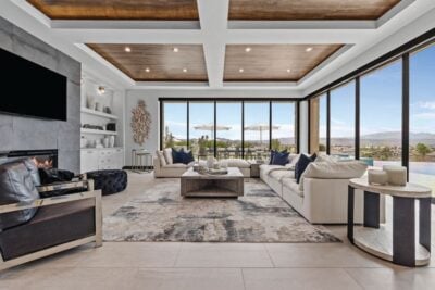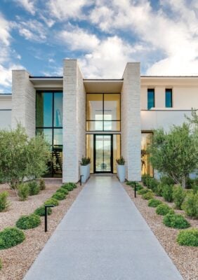 It’s all about indoor-outdoor living at this modern mansion located in the Summit Club. Spanning nearly 1 acre, the seven-bedroom, eight-bathroom home clocks in at 8,936 square feet, ensuring plenty of space for owners and visitors alike. A first-floor primary retreat rivals Las Vegas’ best Strip-side suites, as mountain and desert views await from the spacious bedroom and spectacular primary bathroom, a showstopper where glass walls envelop the space in lush landscaping. Guests will enjoy their own upstairs escape outfitted with its own additional living room, kitchen, dining area and two bedrooms. A spacious backyard invites dwellers to enjoy their own private pool, and a Zen courtyard ensures relaxation from the moment you arrive at your home, sweet home. Austin Sherwood, IS Luxury, (702) 860-8995, Isluxury.Soaring ceilings and plenty of natural light give the home an airy feeling
